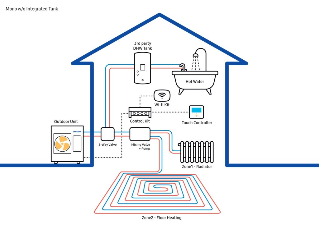 Može. Jedan sistem obezbeđuje grejanje zimi, hlađenje leti i pripremu sanitarne tople vode tokom cele godine.